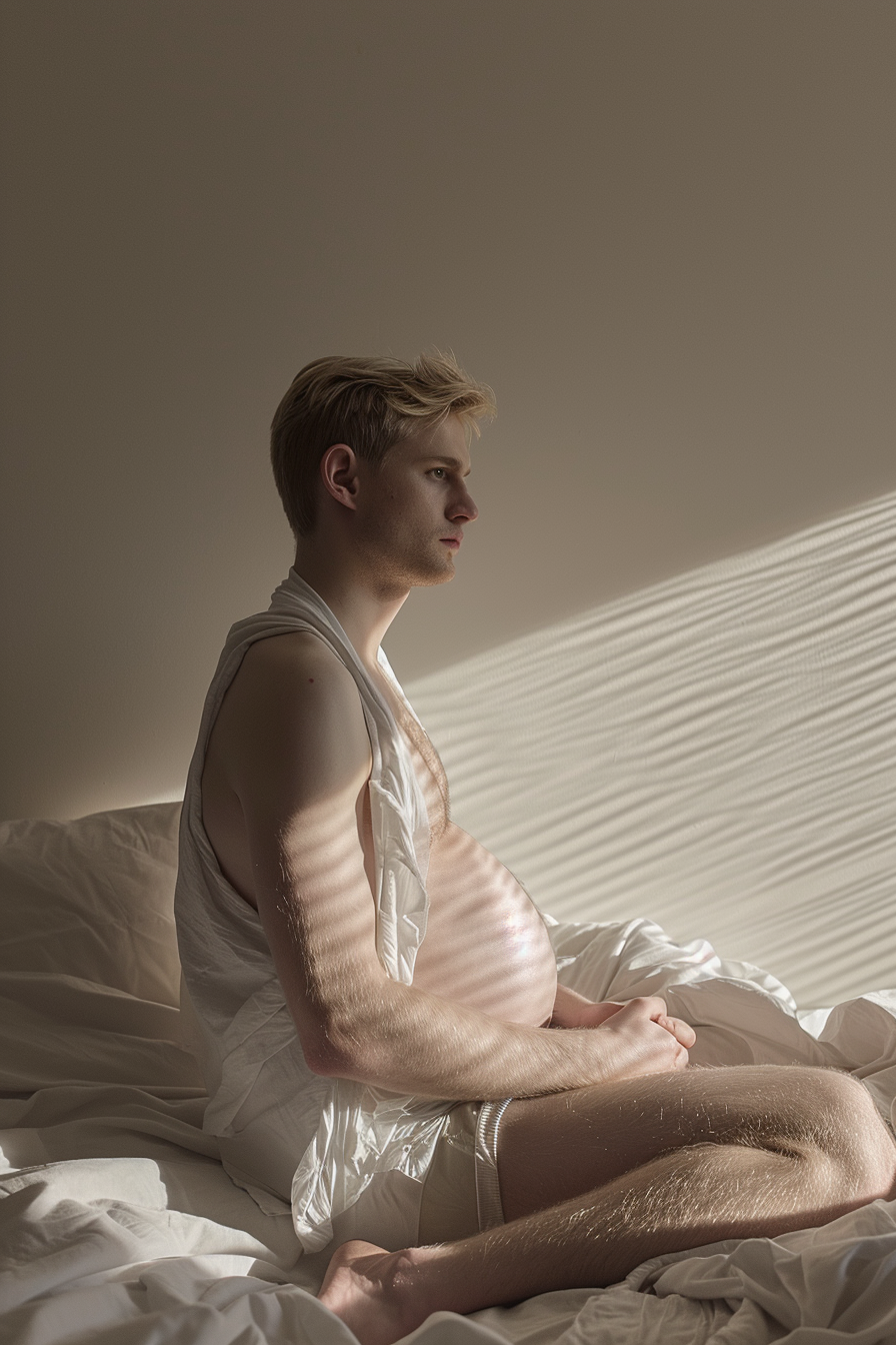 Moderne menn er også gravide i dagens moderne samtid. I hvert fall kan det virke sånn! Men ser vi dem noen gang sånn her? Nei, for menn skal aldri vise seg sårbare.